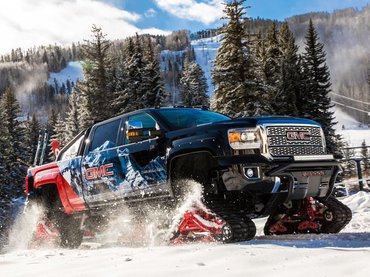 A Sierra 2500HD-ből faragtak egyedi, All Mountain fantázianevű kivitelt. A 6,6 literes, V8-as turbódízel a maga 445 lóerejével és 1200 newtonméteres csúcsnyomatékával mindenhova elég lesz, de hogy erejét megfelelően át is vigye a hófödte dombokra, a kerekeket gumilánctalpakra cserélték, egész pontosan Mattracks 150-esekre.