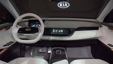 Természetesen belül is egész más lett a tanulmány: a műszerfal új formaterve még jobban hangsúlyozza, hogy minden információt képernyők jelenítenek meg, és sokkal tisztább, futurisztikusabb a belső formaterv is, amit kifejezetten visszafogott alumínium- és rézszínű betétekkel díszítettek. A tanulmányban a Kia is gesztusvezérléssel kísérletezik – így lehet például irányítani a fedélzeti hifit – de arc- és hangfelismerést is alkalmaznak, például így azonosítja gazdáját a Kia tanulmány.