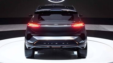 A tanulmány persze nem pont olyan, mint a szériamodell: igyekeztek úgy feldíszíteni, hogy felkeltse az arra járó látogatók figyelmét. Így rengeteg rajta a krómozott felület – a sárvédőíveken és a felniken is hasra esik a fény – és a lámpákon, illetve a sárvédőkön is igyekeztek úgy változtatni, hogy elüssenek a hibrid változat alkatrészeitől. A legfeltűnőbb eltérés azonban a teljesen benövesztett hűtőrács – ilyenre a villanyautónak nincs szüksége, vagy ha van is, hát nem ott, ahol egy hagyományos személykocsinak – amelynek a helyén egy külső kijelzőt helyeztek el. Ezen a kiállítás alatt a „Hello, CES” felirat olvasható, de persze bármi mást is kiírhatna a jármű.
