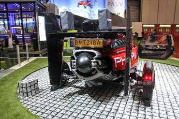 Az Audi-Italdesign-Airbus-féle repülőautó-tanulmány még igen messze van a sorozatgyártástól, van viszont itt Genfben valami más, ami jóval közelebb. A Pal-V nevét aligha ismerik azok, akik a hétköznapi autózás felől közelítik a témát, pedig Liberty névre keresztelt gépük már szériaérett – noha sokkal inkább nevezhető autogyrónak (forgószárnyas, tolólégcsavaros repülő szerkezet), mint igazi repülő autónak. Közelről nézve eléggé kis esetlen a formája, legfeljebb az új Swiftre hajazó első fényszórók emlékeztetnek személyautóra.