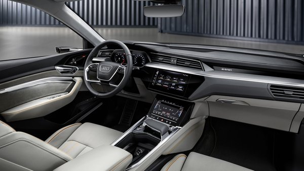 Az energiát, ahogy manapság szokásos, a padlóba épített Li-ion akkucsomag tárolja, amely 36 alumínium-tokozású, egyenként 12 cellás modulból áll. A 396 voltos névleges feszültségű akkumulátor-blokk az azt körülvevő biztonsági struktúrával együtt nagyjából 700 kilogrammot nyom, 2,28 méter hosszú, 1,63 méter széles és 34 centi magas. A gyári adatok szerint 95 kWh tárolható benne, ami kerek 400 km-re elegendő az új WLTP mérési ciklus szerint. Tölteni elméletben akár 150 kW teljesítménnyel is lehet, bár az autóhoz adott töltővel 11, a feláras, nagyobb teljesítményű töltővel pedig 22 kW teljesítmény érhető el, ami bő nyolc, illetve négy órás töltési időt jelent, ha valaki otthon töltené az E-tronját.