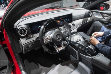 A régi műszerfal két, 12,3 colos kijelzőre cserélődött, amelyeken többféle stílusban jelenthetnek meg a szokásos üzemi információk és a navigáció. Ottjártamkor a Mercedes embere éppen a jobb egyen demonstrálta a gesztusvezérlés működését, vagyis azt, amikor az embernek nem kell elhelyeznie újabb egytucatnyi ujjlenyomatot valamely fényes felületen ahhoz, hogy állítson egyet a rádión, a navigáción vagy az autó egyéb funkcióin. Elég ha integet, ezt meglátja a tetőbe épített kamera és már gördülnek is a szépen rajzolt menüpontok.
