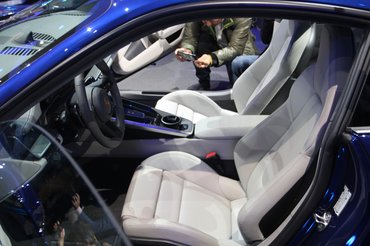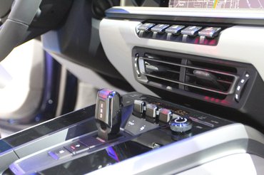 Hogy bent milyen, nekem is csak sajtóanyagból van meg, meg a tömegen átnyújtott fényképezőm képeiből. Azt mondják, a hetvenes évekből jött az ihlet a széltében nyújtott műszerfalra, de ez simán csak kortárs luxus iránynak tűnik. A műszeregységnél csak a fordulatszámmérőt hagyták meg fizikainak, az így annyira nem retró, a vízszintes tagolásba viszont jól passzol, hogy középkonzoltól elszeparálták 10,9 colos kijelző. Alatta lett sok kapcsoló hirtelen, olyan vadászgépes, meg az a fura váltókar.