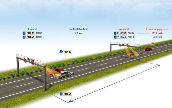 Már Németországban is van átlagsebességet mérő, a korlátozástúllépést ez alapján büntető rendszer. Hannover közelében, a Gleidingen és Rethen közti út egy 2,2 kilométeres szakaszán mérik és büntetik így az autósokat.