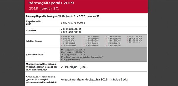 – Az Audi sokáig kitartott a két évre vonatkozó 10+10 százalékos béremelési ajánlata mellett, de a munkavállalók végül megkapták a 18 százalékos (minimum 75 ezer forintos) béremelést.