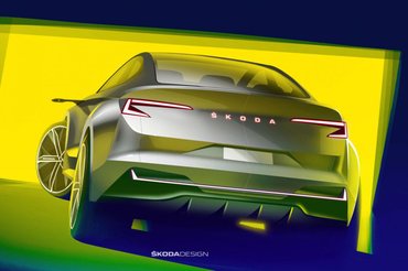 Egyelőre csak vázlatokat mutattak a Škoda tanulmányautójáról, ami szinte minden esetben torzít az arányokon, bár ez esetben talán nem is túlzás a hatalmas kerék: a kiállítási darabra állítólag 22 hüvelykes felnik kerülnek.