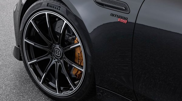 A félelmetesen erős motorhoz persze megfelelő körítést is kínál a Brabus. Előre és hátulra más méretű kerekek kerülnek: elöl 21-es felniken 275/35-ös gumik vannak, míg hátul 22-es felniket és 355/25-ös abroncsokat alkalmaznak. A légrugózást ráadásul úgy módosították, hogy 2,5 centivel közelebb engedje a karosszériát az aszfalthoz, mint a mezei négyajtós AMG GT esetében – mindez pedig azt jelenti, hogy a Brabus új 800 lóerős gépe nem csak gyorsabb, de rázósabb is, mint a csillagos változat.