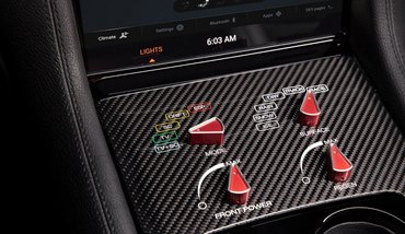 Belülről egyelőre csak egy fotót közöltek, azt is a középkonzol karbonlapjára pakolt kapcsolókról. Ez ugyan még hozza a klasszikus pályaautós hangulatot, de ezen felül állítólag bőrkárpittal, Alcantarával és rengeteg érintő képernyővel fojtogat bent a luxus. A felfüggesztést az Öhlins, a fékeket a Brembo adja. Egy fontos paraméter még van: a GTE legfeljebb 150 kW-os töltővel lesz tölthető.