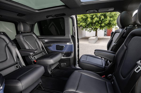 Pontosan ugyanúgy néz ki mint egy V osztály, de még a méretei is teljesen azonosak. Belül sem gondolták túl, viszont megkapta a Mercedes jelenlegi legmodernebb fedélzeti számítógépét és a kötelező tableteket. Ugyanúgy két méretben vásárolhatjuk meg: alap és hosszított padlólemezzel (ezt eleinte csak az Egyesült Királyságban forgalmazzák majd). Ennek függvényében variálható a berendezés is, hattól nyolc ülésig alakítható bárhogyan. Szembe forgatható és sínen mozgathatóak a hátsó ülések, amik alatt az emelt padlóba bújtatott 90 kilowattórás akkumulátorok etetik a 3,5 tonnás kisbuszt.