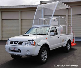 Az NP300 Hardbody modellben nem nehéz felismerni az első generációs Nissan Navarát, amelyet 1997 és 2004 között gyártottak Európa számára, ám Afrikában ma is kínálják, sőt, kedvező ára miatt meglehetősen népszerű. Ebből készítettek integetős kivitelt a pápa számára, fémkorlátokkal, üvegtetővel, egy hatalmas forgó, címeres hímzésű bőrfotellel és zászlókkal.