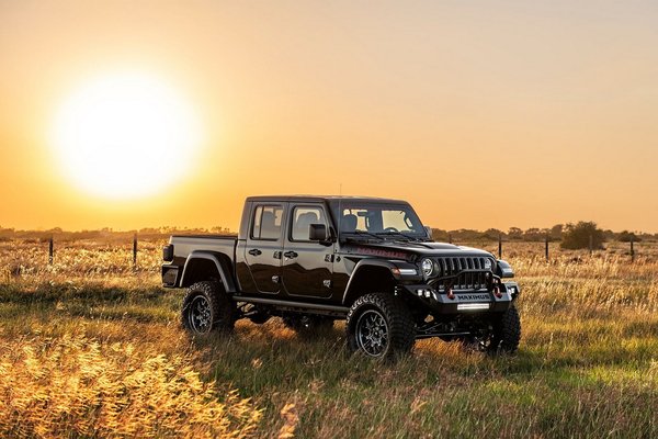 Az eleve kicsit hihetetlen, hogy ekkora teljesítmény nem csavarja egyszerűen a kardán köré a létraalvázat, meg ami még rajta van. Ahogy az is, hogy a Wrangler alapú Gladiator pick-up 3,9 másodperc alatt eléri a 96 km/h-t, ahelyett, hogy helyben megsemmisítené a rászerelt terepgumikat. Hogy a dolog még hihetetlenebb legyen, a Hennessey a tuningolt, 6,2 literes Hellcat V8-as mellett hat hüvelykes King hasmagasság-emelő készletet is beépít, azaz a Maximusban legalább 15 centivel magasabban ül a sofőr, mint a gyári Gladiatorban.