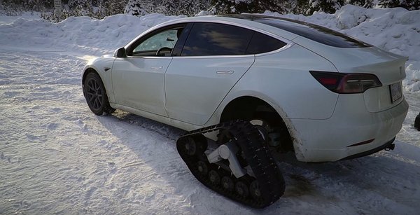 Egy Mullin nevezetű tuningműhely szerelte fel Michaelnek a lánctalpakat a hátsó kerekek helyére, aki szinte egyből használatba is vette a járművet. A videóban is látható, hogy jól vette az akadályokat a Model 3, és simán tudott közlekedni a havas utakon. Egyedül a tolatással és az út szélén feltorlódott hóval akadtak kisebb gondjai az autónak, de a YouTube-os szerint alaposabb előkészületekkel ez is kiküszöbölhető lett volna. Összességében teljesen elégedett volt az eredménnyel.