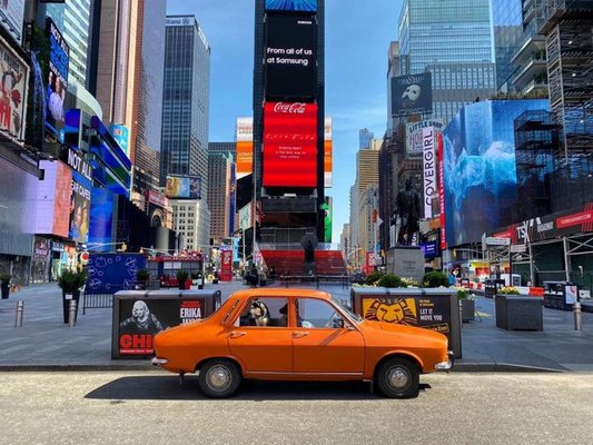A koronavírus-járvány miatt New York utcái is teljesen üresek, így Eduard gondolt egyet, felkapta a Dacia kulcsait, majd elment a város legnevezetesebb helyeire – például a Times Square-re - és lefényképezte a narancssárga autóját, kutyájával a hátsó ülésen. A képek normális esetben sosem készültek volna el, de most igen, és baromi látványosra sikerültek. Eduard Facebook oldalára is feltöltötte őket azzal a címmel, hogy a város, amely sose alszik, elszundított.