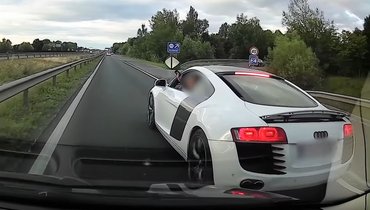Érdekes utóélete lett egy neten terjedt fedélzeti kamerás videónak. Egy klasszikus büntetőfékezéses/leszorításos tahóskodás látható rajta, plusz egy hisztis sofőr az R8-ban, aki az M0-son találta meg magának a másik szereplőt, egy fiatost. Akinek két kamera is volt az autójában, megosztotta a videóját, ami alapján a rendőrség megtalálta és előállította az audist.