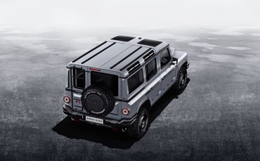 Még a részletmegoldások is hasonlóak. Például az ablakkeretek, a karosszéria jellegzetes, vállas övvonala, a tető kialakítása vagy a sárvédőívek – csak az arányok nem stimmelnek. Az oldalablakok alsó pereme például nincsen egy vonalban, ahogy a Land Roveren, nagyon más a tengelytáv és a túlnyúlások aránya – ebből a szempontból inkább a Mercedes G osztályra emlékeztet a Grenadier – és persze az autó orrkiképzés sem azonos. Az Ineos terepjárója látványosan szélesebb is, mint a Defender volt, de ettől a hasonlóság még letagadhatatlan.