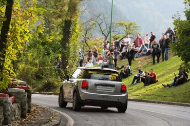 Az elektromos Mini nem kifejezetten versenyautó, valószínűleg nem is tudna végigcsinálni egy teljes raliversenyt, de egy gyorsaságin azért végigmentek vele.
