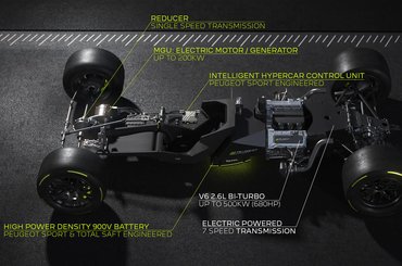 A rendszer működése nagyrészt persze a szabályokból adódik, amelyek szerint az elektromos hajtás 120 km/h-nál kapcsolódhat be a hajtásba, és a mindenkori összteljesítmény csak az akkumulátor töltésére fordított 3%-kal haladhatja meg az 500 kW-ot. Így a benzinmotor teljesítményét úgy kell szabályozni, hogy a villanymotor aktuális teljesítményét mindig épp 500 kW-ra egészítse ki.