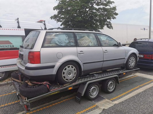 Bár a bírság alapján a képen látható trélerezésre illik a horrorkaraván jelző, első látszatra ez csak egy Passat, ami egy hozzáillő tréleren nyugszik. Közelről nézve már látszik, hogy mi volt itt a baj, a mérlegelésen pedig kiderült, hogy 800 kilogramm túlsúlyt szedett össze a vontatmány a megpakolt VW-nek hála.