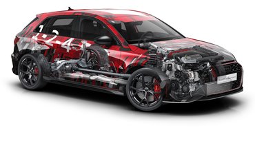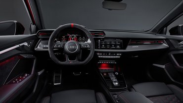 LED mátrixos fényszórói vannak, amiknek nappali menetfénye állítható, így lehet kockás zászló mintájú, de az R vagy az S betűk is megjelenhetnek a világító szegmensekkel. A beltérben sportülések és középjelzős, csapott aljú alcantara kormány figyel. Mindent okosságot tud, amit egy A3-as Audi, csak ebben még ott az öthengeres motor legendája is.