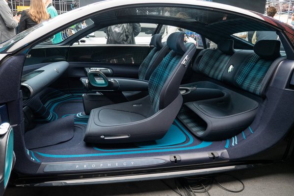 Formailag nagyon izgalmas az Ioniq 6 Concept (Prophecy – prófécia) előtanulmány is, bár ezen látszik, hogy tipikus, közlekedésre alkalmatlan műanyag tojás, B oszlop nélküli, ellentétesen nyíló ajtókkal. Utasterében a hatvanas éveket idéző dizájnfotelek vannak, a kormánykereket pedig egy fura, ajtófogantyúra emlékeztető, jobbra-balra billenthető valami helyettesíti. Stilizált pedálok is vannak a tanulmányautóban, vagyis ez sem lesz Level 5 szintű, teljesen önvezető jármű. Sőt, ennyire futurisztikus sem lesz, a szériaváltozatban lesz rendes volán, bár hatalmas head-up display-t ígér mindehhez a Hyundai.