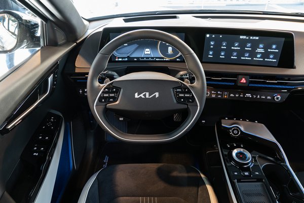 Élőben pont jónak tűnik az EV6 magassága, a tágasra nyíló ajtókon könnyű a beszállás előre és hátra is, mert az ülések magassága kellemes. Meglepetésként ért azonban, hogy viszonylag kemény szivacsokat csomagoltak a GT-Line finom kárpitjába, így az érzés sprőd, sportos – már álló helyzetben vagányságot, elszántságot sugall. Úgy tűnik, így akarja magát megkülönböztetni a Kia a Hyundaitól.