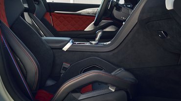12,3 colos érintőképernyője mellett leginkább színekben és kárpitokban frissült az M8-as, így nyolc új szín került a választékba. Ablakkerete és hűtőmaszkja mellett már a lézeres LED fényszórók belső elemei is lehetnek feketék, hogy haragosabb legyen a tekintete. Az utastérben már nem csak sportüléseken lehet üldögélni, hanem az M4-ben megjelent Merino bőrbe és alcantarába varrt, opciós karbon kagylóüléseken is, aki kivételesen komolyan venné a hétvégi versenypályás használatot.