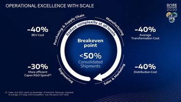 Arról is szó esett, hogy az elektromos autók árát mindenképp lejjebb kell vinni ahhoz, hogy üzleti modellt tudjanak rájuk építeni, amit a Stellantis stratégái széles spektrumú spórolással próbálnak elérni. A modellfejlesztésen 30, a beszállítókon és a gyártási költségeken 40, az értékesítés költségein pedig szintén 40%-ot spórolna a cég, így próbálnák elfogadhatóbb szintre hozni az elektromos járművek árát. Azt egyelőre elég nehéz elképzelni, hogy a beszállítók és a kereskedők egyszerűen lemondanak a bevételeik egy jelentős részéről, de más út nem nagyon látszik.