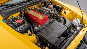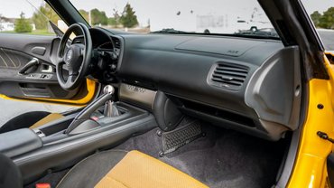 699 darabot adtak el az S2000 Club Racerből az Egyesült Államokban, és szerencsére gyakori köztük az ilyen Rio Yellow Pearl színű, mint ez itt. A CR-en átdolgozott első lökhárítók vannak, és hátsó szárnyat is kapott, melyek aerodinamikailag szerencsésebbek a gyorsan menéshez, a 17 colos felnikre pedig gyárilag Bridgestone Potenza RE070 gumikat húztak.