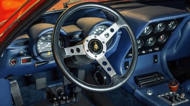 Mielőtt még Amerikába szállították volna a 4884-es számú Miura SV-t, Peter Coltrin fotózta meg, hogy aztán különböző kiadványokban és az SV prospektusában is felhasználják a fényképeket. 3,9 literes, V12-ese 380 lóerős és 400 Nm nyomatéka van, gyönyörűen sorakoznak rajta a Weber karburátorok, de nem csak ezért nézett ki jól az első amerikai Miura SV, hanem a piros fényezés, az arany felnik és a kék bőrbelső kombinációja is volt olyan merész, hogy látványosan mutasson a katalógusban.