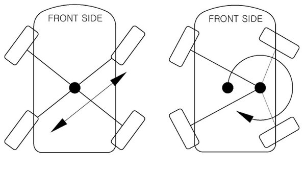 A variációk közt szerepel a ferdén oldalazás mellett a hossztengelyre merőlegesen haladás, valamint a helyben megfordulás az autó középpontja, vagy egy oldalirányba eltolt forgási középpont körül. Ez a fajta mozgásszabadság kivételes szabadságot jelentene, bár a négy kerék független hajtásán és kormányzásán kívül az eddiginél komplikáltabb járműirányítást is követelne.
