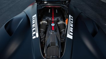 Ráadásul három teljesen különböző autóról van szó. Az F150 Muletto M4 egy 458-asból átépített öszvér, amelyben csak a hajtásrendszer a későbbi LaFerrarié. Ebben fejlesztették 2011-12-ben az emissziós normáknak megfelelőre a 6,3 literes V12-es motort és a hozzá tartozó hibrid alrendszert, amelyek összesen 963 lóerő leadására képesek. Itt a forma láthatóan nem volt érdekes, viszont igazán látványos, hogy mekkora légbeömlőkre volt szükség a nagy szívómotor hűtésének és levegőellátásának biztosításához.