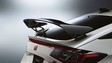 A képek tanúsága szerint a 20 colos felniket 19 hüvelykesek váltották, ennek a módosításnak is a súlycsökkentésben lehet szerepe. Ami viszont még szembetűnő, hogy bár elöl négydugattyús nyergek préselik a betéteket a féktárcsákhoz, maguk a tárcsák nem lyuggatottak. Noha a kerékméret egy collal kisebb, a Michelin Pilot Sport S gumik még szélesebbek: 265/30-as abroncsok feszülnek a felniken. Kívülről persze a méretes szárny, a jókora légbeömlők, valamint a különféle toldatok markánsan elkülönítik a Type R-t a lakossági hibrid-Civicektől, és a középen kivezetett tripla kipufogóval sem szakítottak.