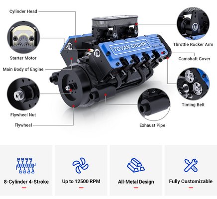 A Toyan mini V8-as motorja előrendelői akció keretein belül 1.450 dollárba, azaz nagyjából 567 ezer forintba kerül, amennyiért néhol már egy igazi V8-ast is hozzánk vágnak, ha szerencsénk van.