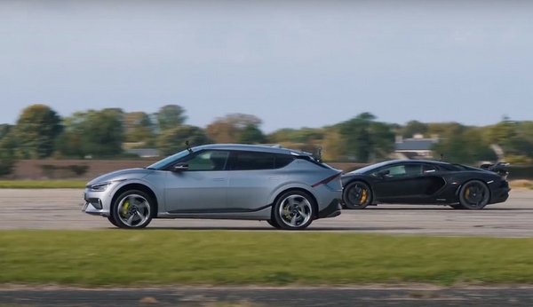 Az öregsulit a 6,5 literes V12-essel szerelt Lamborghini Aventador SVJ jelenti, ami 770 szívó lóerőt tud. Az utánozhatatlanul ordító szupersportautónak 2,8 másodpercre van szüksége, hogy elérje a százat, de a kétszázhoz is elég neki további 5,8 másodperc. Az Aventador ellenfele a Kia elektromos csúcsmodellje, az EV6 GT, ami bár jóval gyengébb és nehezebb, mint a Lambo, nulláról százra így is 3,5 másodperc alatt gyorsul papíron.
