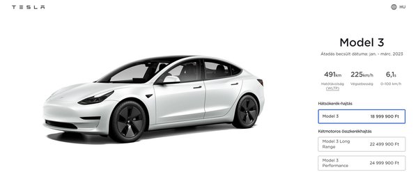 A Model 3 ára bekúszott 19 millió forint alá, így nagyjából 3 millió forinttal lett olcsóbb. Ami viszont talán még ennél is meglepőbb, hogy a jóval tágasabb Model Y árát is levitték 20 millió forint alá, így a két modell közti különbség már csak 1 millió forint, amivel a több gyermekkel rendelkező Tesla fanoknak is kedveskedtek - nem titkolt céljuk ezzel a lépéssel, a vásárlási kedv élénkítése.