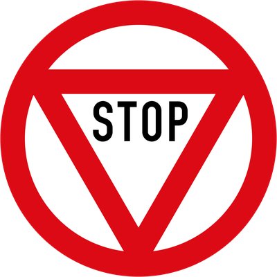 STOP táblák persze korábban is léteztek, csakhogy drasztikusan máshogy néztek ki, mint amihez hozzászoktunk. Először is, kör alakúak voltak, fehér alapon piros szegéllyel, középen élére állított piros háromszöggel és fekete STOP felirattal. Íme: