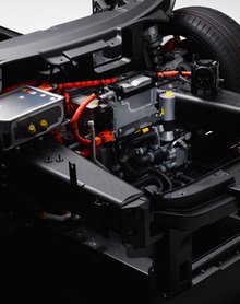 Az első tengelyen olajhűtésű állandómágneses motorok adnak le kétszer 110 kW-ot. 18,5 kiló darabja, a három motor és a V12 kombinált összteljesítménye pedig 986 lóerő lett. Talán elég lesz a teljesen elektromos módban is elérhető összkerékhajtás mellé.