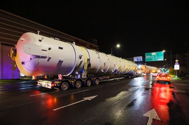 A desztilláló kolonna, más néven a rektifikáló oszlop a 65 milliárdos beruházásból épülő új propilén üzem legfontosabb eleme, a MOL Petrolkémia pedig szállított már hasonlóan nagy fémdarabokat. Legutóbb épp két éve, a poliol komplexum építésekor.