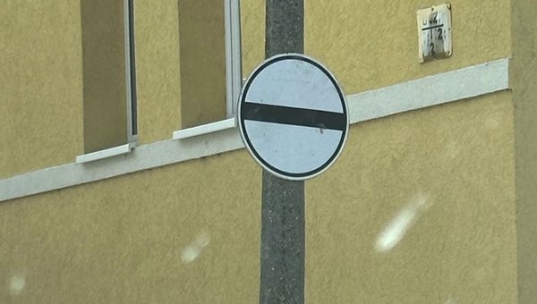 A KRESZ-szabályokban nem ismert közlekedési táblát helyeztek ki Pécsen, ami nem csak a közlekedőket, de a rendőrség nagyra becsült munkatársait is megtévesztette. A táblát eredetileg behajtani tilos táblának szánták, de súlyos rejtély, hogyan lett a piros alapon fehér sávból egy fehér alapon, fekete peremet összekötő csík, hiszen így sem a forma, sem a színvilág nem stimmel.