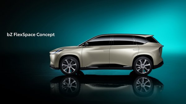 A másik most bemutatott koncepció, a bZ FlexSpace a bZ Sport Crossover nagyobb, felnőttesebb testvére, melyet elsősorban családoknak szán a gyártó. A modell magasabb, kissé dobozszerű felépítésének hála jóval tágasabb, a belsejét pedig állítólag az „otthon kényelme" ihlette. A Toyota nem árulta el az autó méreteit, de már ránézésre is látszik, hogy jóval nagyobb, mint a bZ4X.