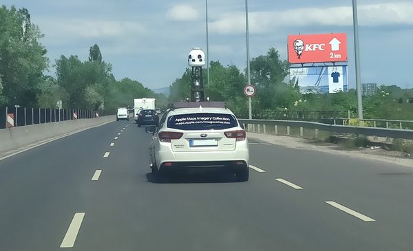 A Google-nek azonban nemrég kihívója akadt. Az egyik legnagyobb konkurensük, az Apple már korábban elindította saját utcaképszolgáltatását az Apple Maps név alatt, ennek használhatósága azonban Magyarországon erősen korlátozott volt. Olvasóink fotói alapján azonban most ők is körbejárják az országot, hogy 360 fokos felvételeket készítsenek. Az észlelések úgy látszik, hogy a Google-el egyszerre cirkálnak Magyarországon, hiszen többen látták a techcég fehér Subarujait is, amik a Google Maps tarkára matricázott autóival ellentétben minimalista megjelenést mutatnak, márha egy körülbelül másfél méter magas oszlopon elhelyezett kamerarendszer bármilyen síkon minimalistának tekinthető.