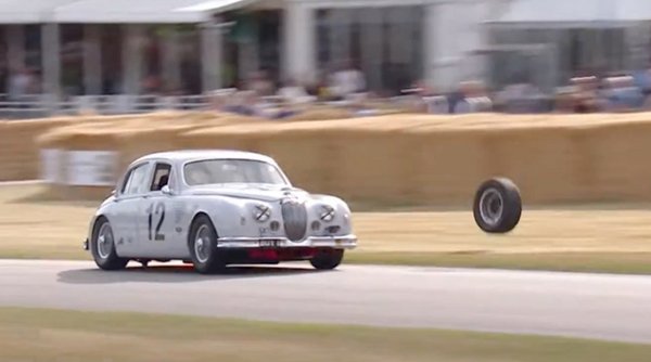 Ismét baleset történt Goodwoodban, a Festival of Speeden: egy Jaguar Mark I kereke elszállt, miközben épp tolták neki. Ez nem az első baleset az idei eseményen, nemrég a Hyundai RN22e koncepcióautóval álltak bele a szalmabálákba.