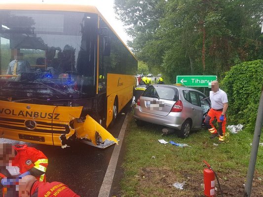 Összeütközött egy autóbusz és egy személygépkocsi a 71-es főút 44-es kilométerénél, Tihany térségében vasárnap reggel 9 óra 56 perckor.