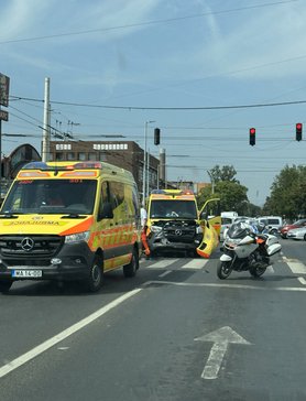 Balesetezett egy mentőautó hétfő délelőtt a Könyves Kálmán - Kőbányai út kereszteződésben.