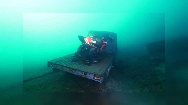 A Comói-tó mélyén nem csak öreg törött kisautók vannak. Nemrég felfedeztek egy Piaggio Ape-t is, rajta kettő sport Ducatival, vagyis legalábbis Ducatinak látszó motorral, hiszen aligha valószínű, hogy ilyen értékű motorokat egy Ape-val szállítsanak.