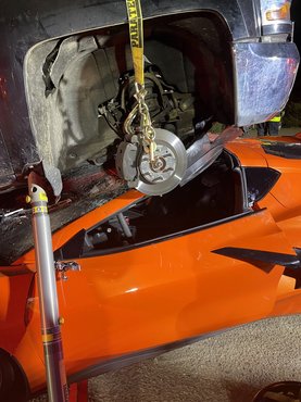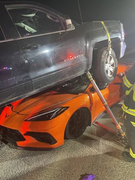 Egészen abszurd baleset történt hétfő este Coloradóban, tisztázatlan körülmények között egy Chevrolet Silverado pickup megmászott egy Corvette C8-at.