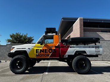 Sokkal könnyebben emészthető az Eneos Land Cruiser Pickupja. Ez valójában egy 70/80-szériás restomod, amit az RPM Off-Road Garage épített Kaliforniában. Erre azért volt szükség, mert a HZJ79-szériás pickup-karosszériát sosem árulták Észak-Amerikában.