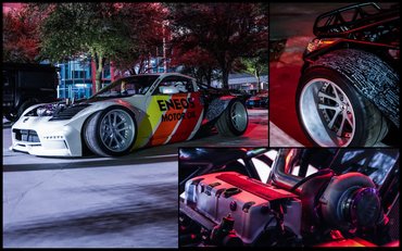 Az eredetileg összetört fenekű 350Z 800 dollárba került egy árverésen, majd driftautóként folytatta egy komplex bukócsővel a hátsó karosszériaelemek helyén. Robinson aztán tetőre rakta a pályán, és így kezdődhetett a játék elölről.