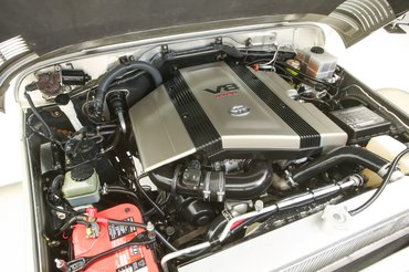 A motortérbe bekerült az akkori, 100-as Land Cruiser 230 lóerős, 4,7 literes motorja, amihez egy egyedi gyártású, Borla kipufogórendszert kapcsoltak, hogy rendesen szóljon a V8. Elég ütős lehetett 1999-ben, ahogy az ezüst színű, széles Toyota begurult valahova a hatalmas kerekein, miközben kellemesen rotyogott benne a motor.
