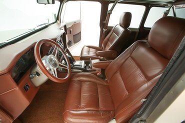 Ahogy a külsőt, úgy a belsőt is átalakították: az egészet újrahúzták Connolly-bőrrel, és beépítettek pár extrát is. Így például van benne műholdas telefon, navigáció és víztartály, hiszen a Retro Cruisert alapvetően terepjárónak szánták, nem csupán bemutatóautónak. Még egy bukókeretet is beépítettek, ami követi a beltér formáit, így nincs igazán útban, a kaszni merevségének viszont jót tesz.